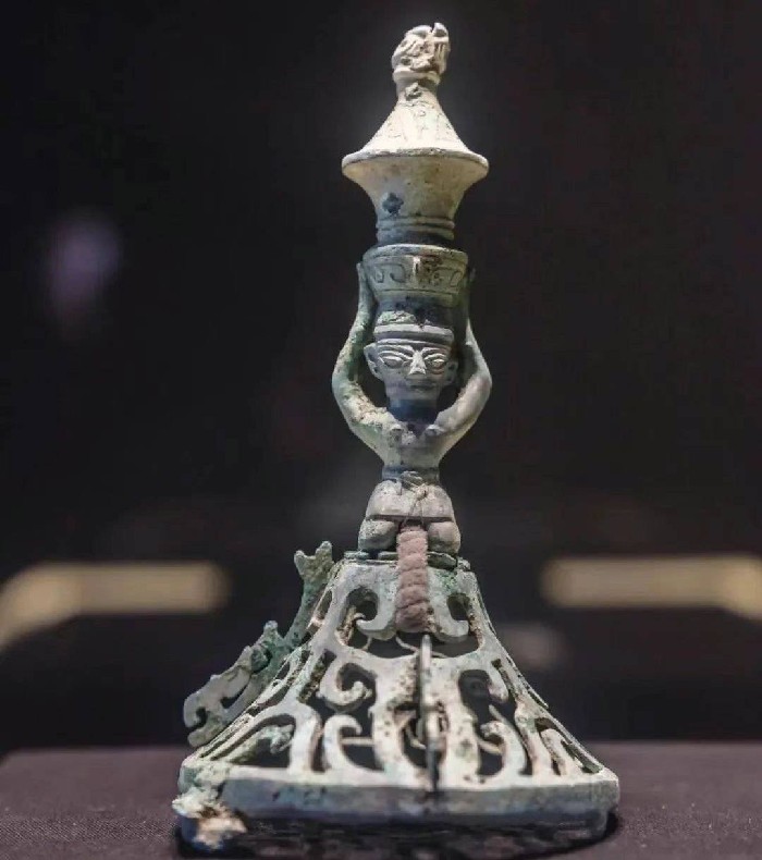 青铜顶尊跪坐人像