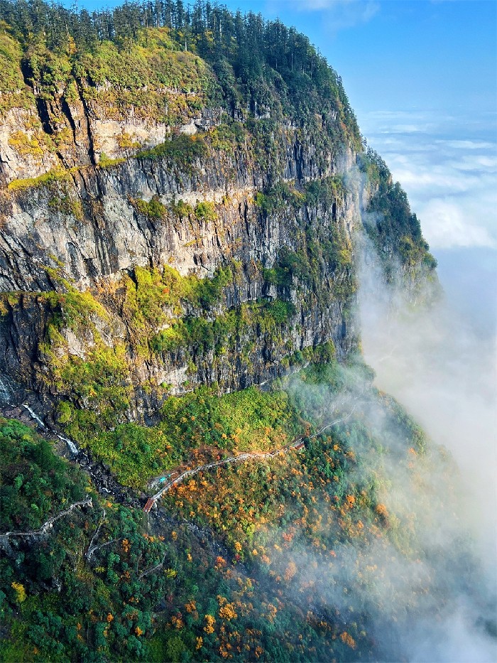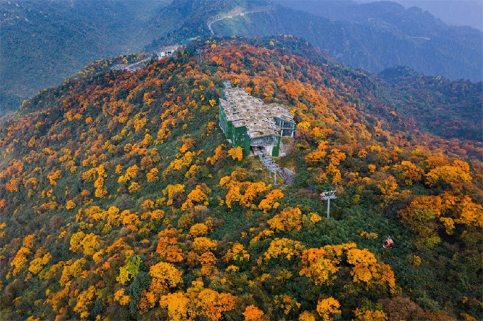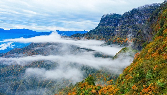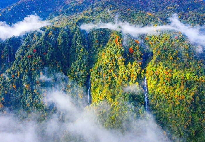 瓦屋山景区相关负责人介绍,逐渐变色的枫树、珙桐、银杏、杉树、柏树混杂在常绿植被中,让景色美得壮观,不仅适合徒步登山,也是观看野生小熊猫的最佳时机。