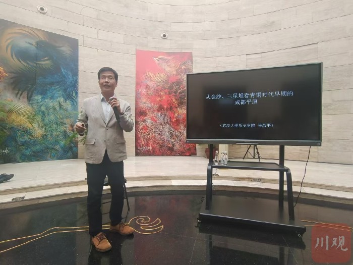10月26日下午,在成都金沙遗址博物馆,武汉大学历史学院教授、教育部长江学者奖励计划特聘教授张昌平以《从金沙、三星堆看青铜时代早期的成都平原》为题,围绕金沙、三星堆遗址及其祭祀,金沙发现对成都平原早期青铜文明的理解等方面,为听众答疑解惑。