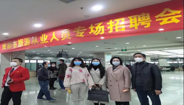 ,联合组织举办了“2020年旅游从业人员专场招聘会”。成都市就业局副局长唐韬,成都市文化广电旅游局市场调研员葛霞,成都市技能人才服务中心主任张树林,市场处石永建副处长,成都市文化广电旅游局导游管理办公室张雯,