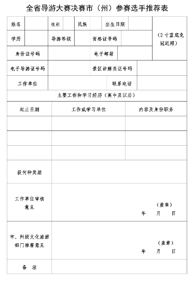 1.选手推荐表电子版。