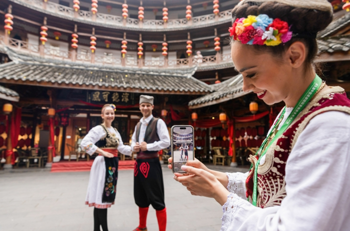 外国游客打卡洛带古镇 摄影:林漫