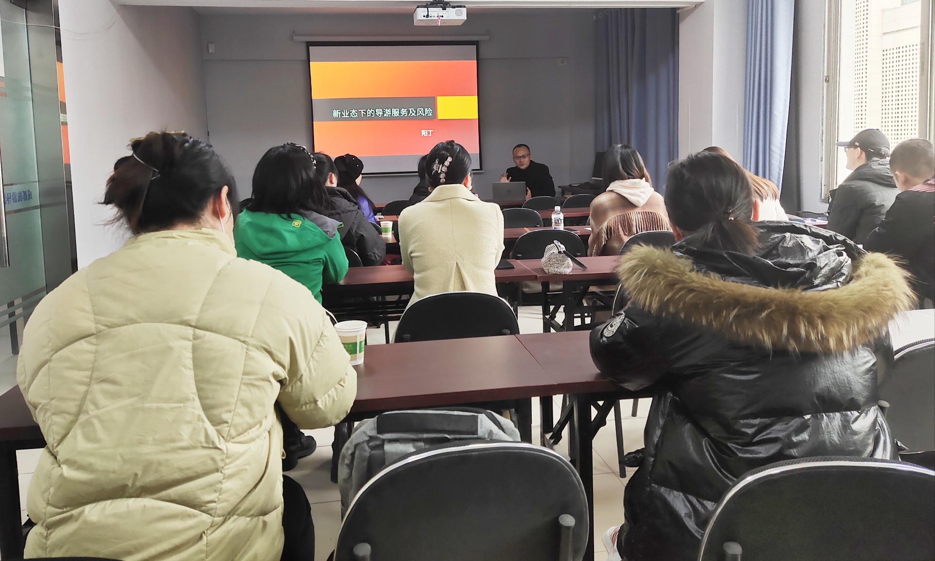 学员们听得很认真,表示此次培训受益良多,尤其在导游自我保护及导游执业法规方面收货很大,对以后的带团很有帮助。