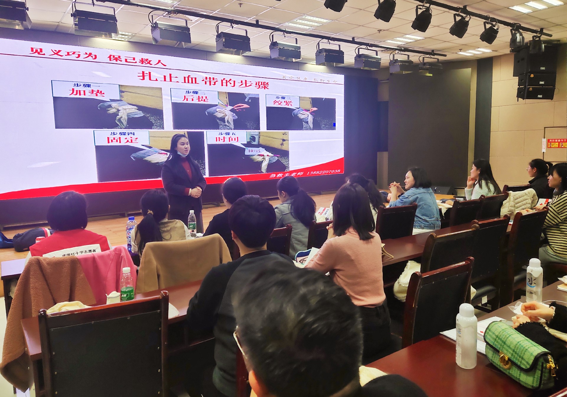 辛老师为大家就常见急症及意外伤害的急救处理、重大交通事故现场的急救处理、火灾事故现场的急救处理、触电事故的急救处理、溺水事故的急救处理、地震逃离的紧急逃生及心肺复苏、气道梗塞急救、创伤救护等自救、互救知识进行了讲解,并通过生动具体的实例,让大家领会了讲课内容的实质。
