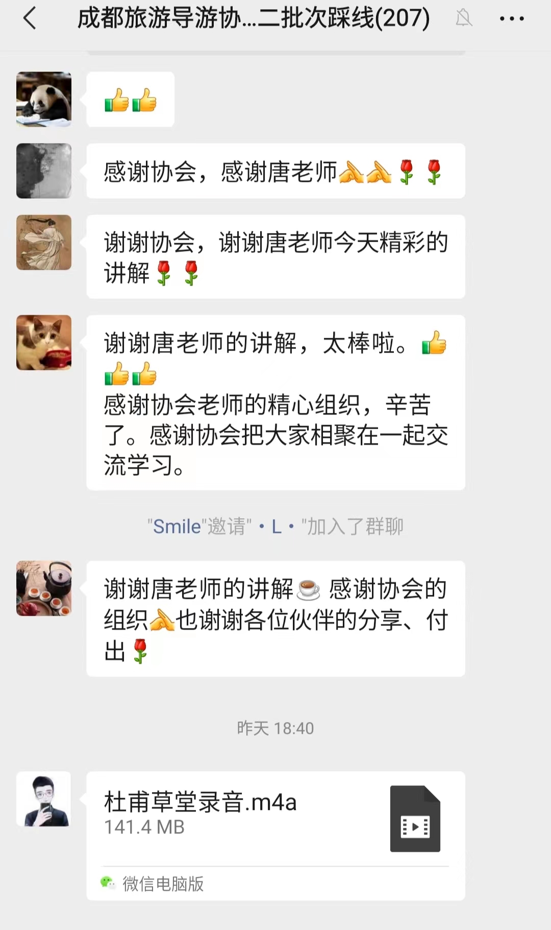 组织的成都杜甫草堂博物馆实地踩线圆满结束,协会百余名会员参加了此次踩线活动。本期踩线由国家高级导游、
