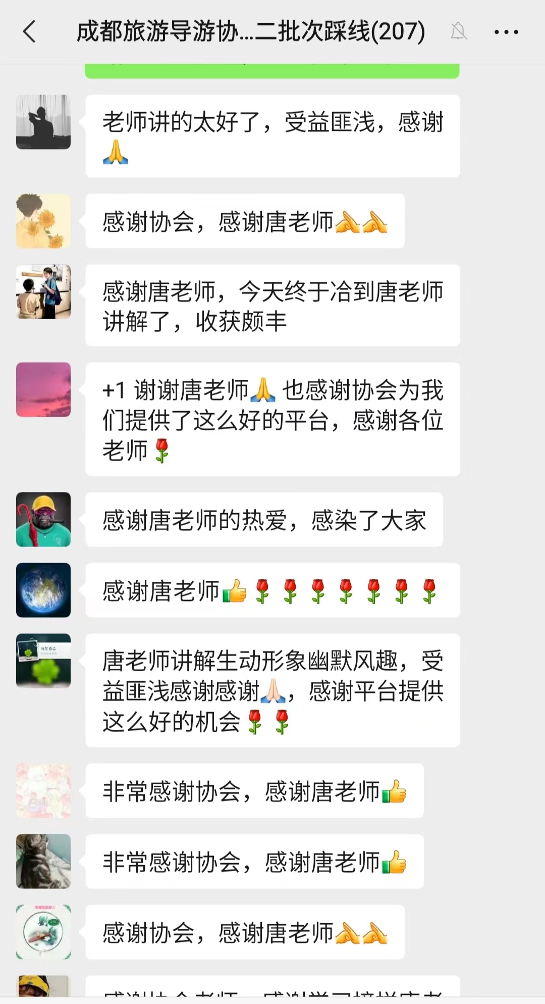 此次培训是协会2023年系列踩线活动的第二期,后续也将陆续开展三星堆、三苏祠等热门景点实地踩线活动,为会员争取更多的学习机会,发挥好桥梁纽带作用,服务广大会员。