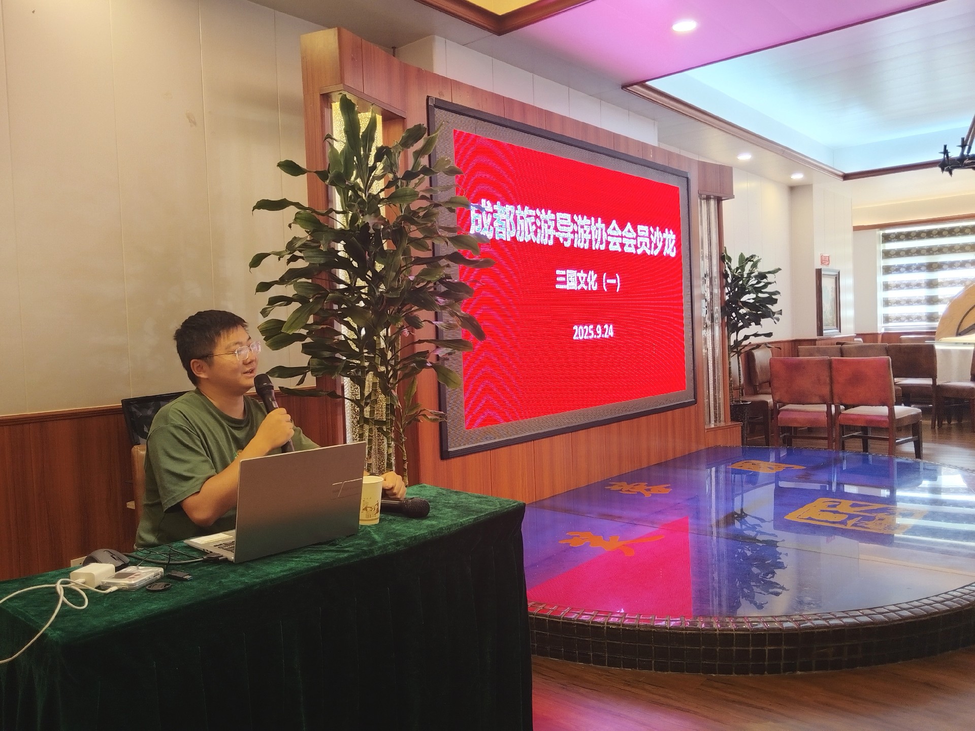 为深化会员导游对本地核心历史文化的理解,提升专业讲解内涵与服务水平, 于9月24日成功举办了以“对话三国,深析蜀汉”为主题的三国文化会员沙龙。活动特邀 名师名导工作室成员、原成都武侯祠博物馆一级讲解员、资深三国文化研究者肖亦翀老师担任主讲嘉宾,吸引了协会百余名会员积极参与,现场学术氛围浓厚,交流互动热烈。