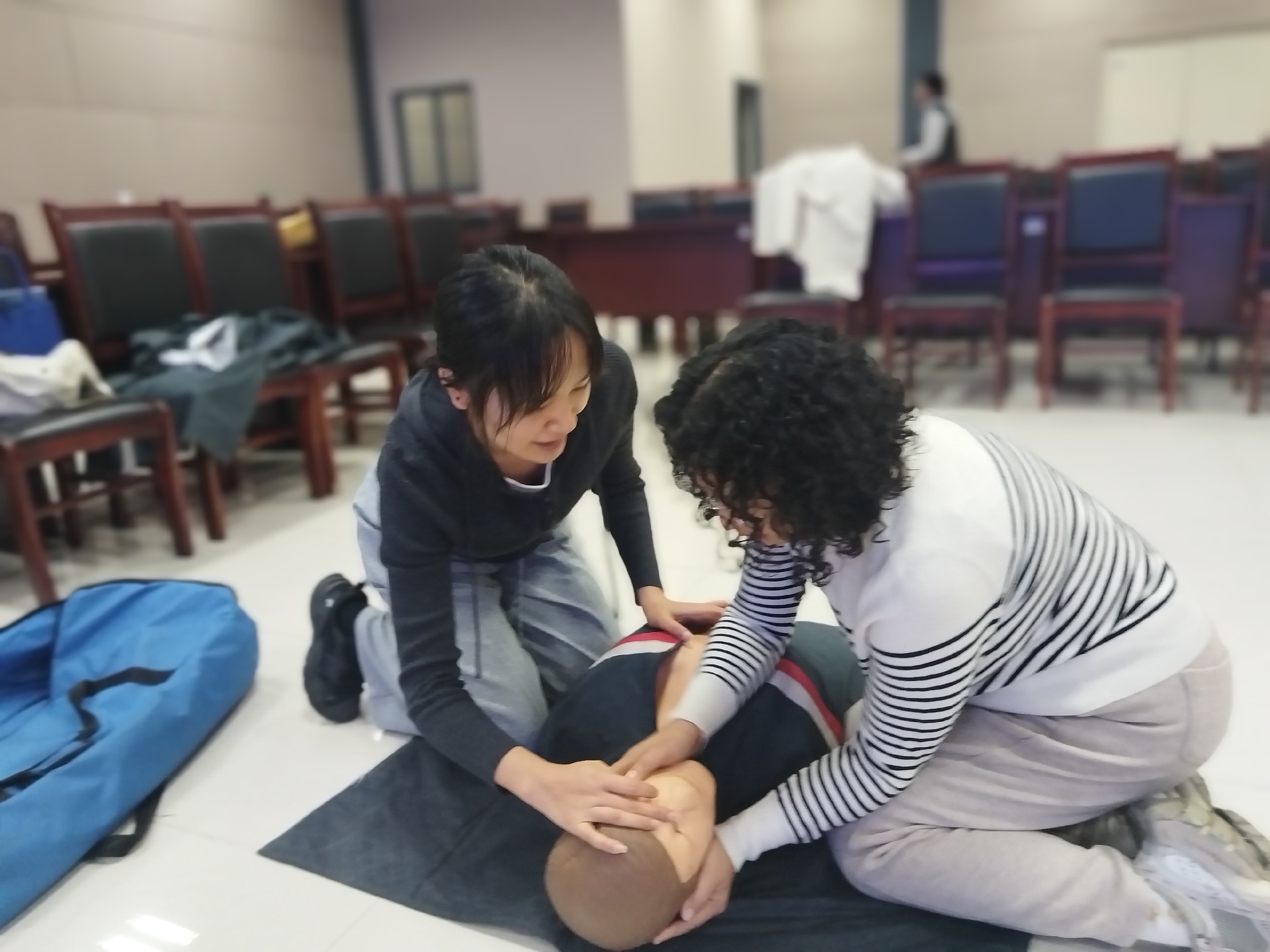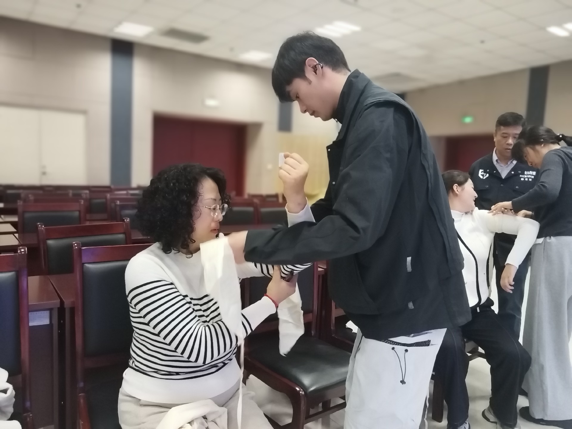 在紧急医疗救护技能环节,培训聚焦于实践中常见急症的处置方法。内容包括成人心肺复苏(CPR)的操作流程与关键要点、扭伤的正确处理步骤、癫痫发作时的现场援助措施。尤其对止血技术进行了重点教学,细致讲解了指压止血法、加压包扎止血法以及止血带使用的适用情形、操作规范与注意事项,确保学员在关键时刻能够采取正确、有效的初步救护措施。